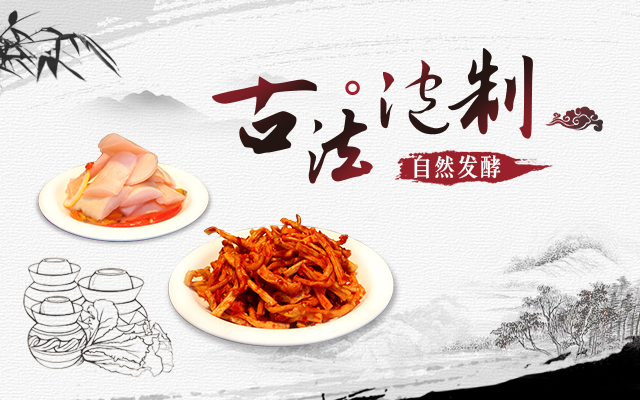 侗古佬自主研发新式泡菜,采用现代规范的加工作坊与传统的老坛自然发酵工艺相结合,天然着色,古法泡制